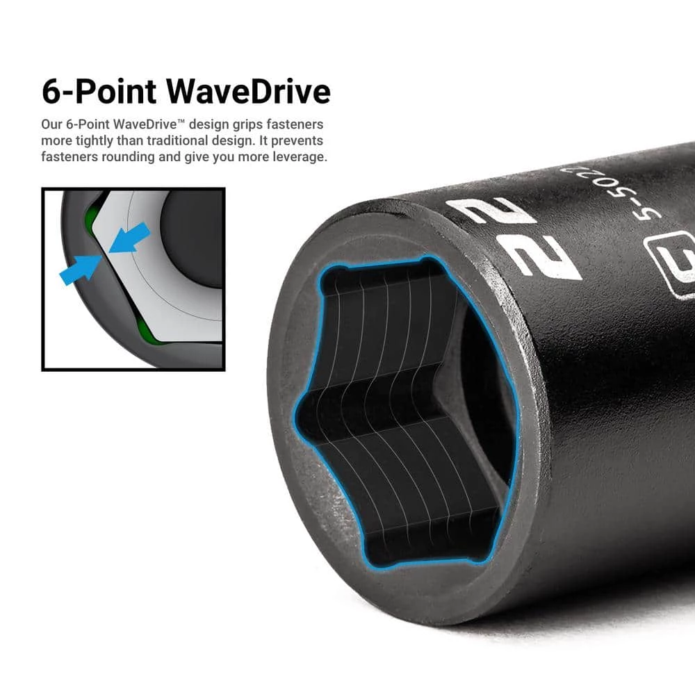 - 6-point wavedrive design grips fasteners more tightly than traditional design, preventing fastener rounding and giving you more leverage