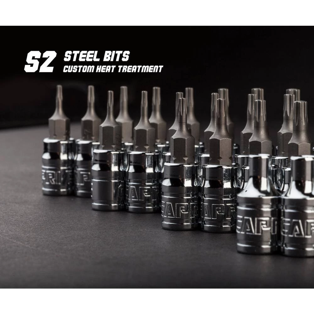 The Capri Tools bit sockets are made for the most demanding professionals. Each of our bit sockets is made from custom forged steel that underwent a proprietary heat treatment process and precisely machined to perform in toughest situations. Premium S2 steel forged bits are exceptionally strong and durable. They withstand high torque and do not twist, protecting both the bit and the fastener. All bits feature chamfered end to ensure a smooth fit onto fasteners. The sockets are constructed with premium Chrome Vanadium steel and plated with our own chrome protective plating. They are durable and resist corrosion. Meets and exceeds ASME B107.110 standards.