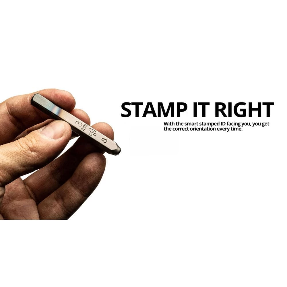 - Find the right stamp and orientation easily with engraved sizing and letter identification on the side that faces you on each stamp