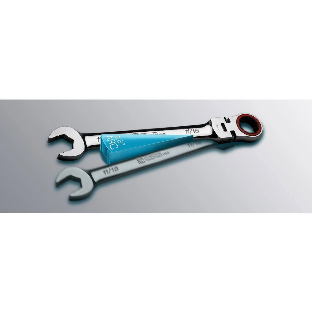 Experience our true 100-tooth flex-head ratcheting combination wrenches in the tightest of spaces. with just 3.6 of swing arc, they will make your job a whole lot easier. Our true single-pawl 100-tooth ratchet gear is achievable only through expert engineering and precise craftsmanship. Its unparalleled smooth ratcheting mechanism makes it a joy to use. All of these components are engineered to fit in a slim profile to make these the go-to wrench for pros. 180 flex-head box end combined with our slim profile gives you the ultimate flexibility. 12-point WaveDrive box end transfer torque uniformly and prevents damaging and rounding of the bolt. 0 offset on the box end gives you maximum clearance. Integrated steel color ring makes it easy to identify between SAE (red) and metric (blue) sizes. Open end features 6-point anti-slip groove that grips on the fastener and prevents slippage while you work. The open end is tipped at a 15 angle, it is useful especially in tight spots: after each 15 turn, flip the wrench over to quickly engage the fastener again. Flawless chrome plating, achieved by thorough polishing and careful application of chrome protective plating, ensures durability and corrosion resistance.
