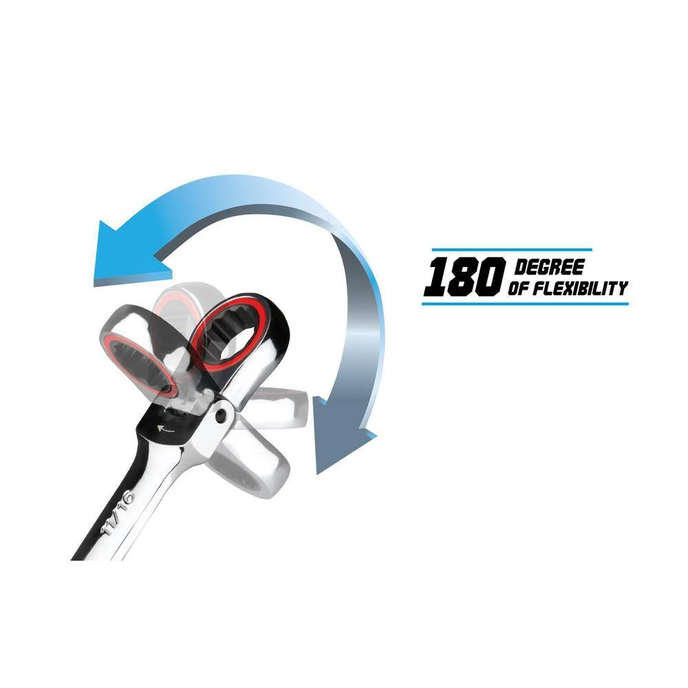 - Size:11/16 in. open end and flex-head ratcheting box end