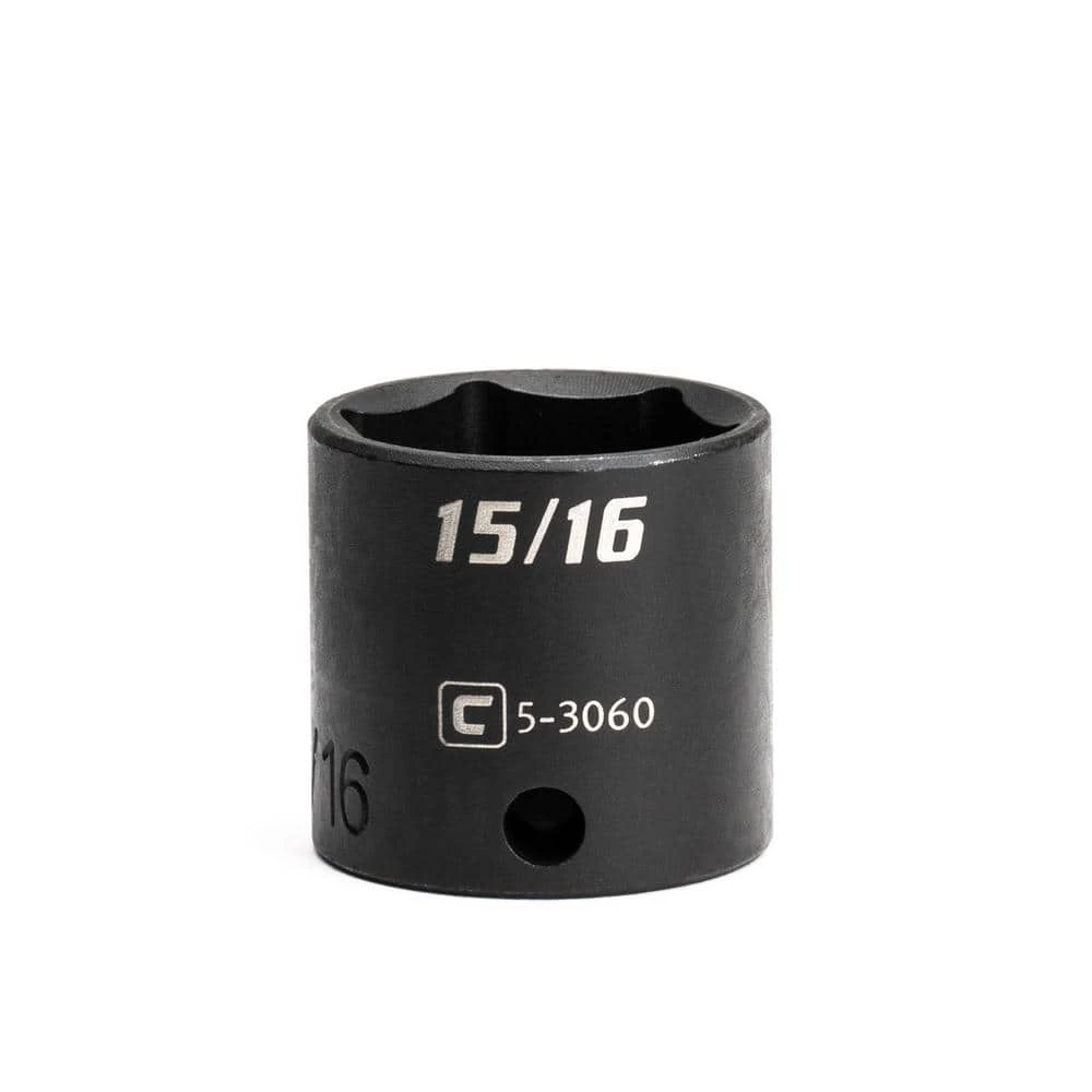 Capri Tools high performance sockets are trusted by professionals for even the most demanding applications. We use premium Chrome Molybdenum steel tempered with our proprietary heat treatment process to make these impact sockets. They are durable and specifically made to withstand high torque from power tools. Each socket is expertly coated with manganese phosphate, the preferred coating in military and aerospace, which offers superior protection and corrosion resistance compared to black oxide coating on other impact sockets. The 6-point Wave Drive design grips fasteners more tightly than traditional design, preventing fastener rounding and giving you more leverage. Single shallow length, 3/8 in. drive, 15/16 in. size socket.