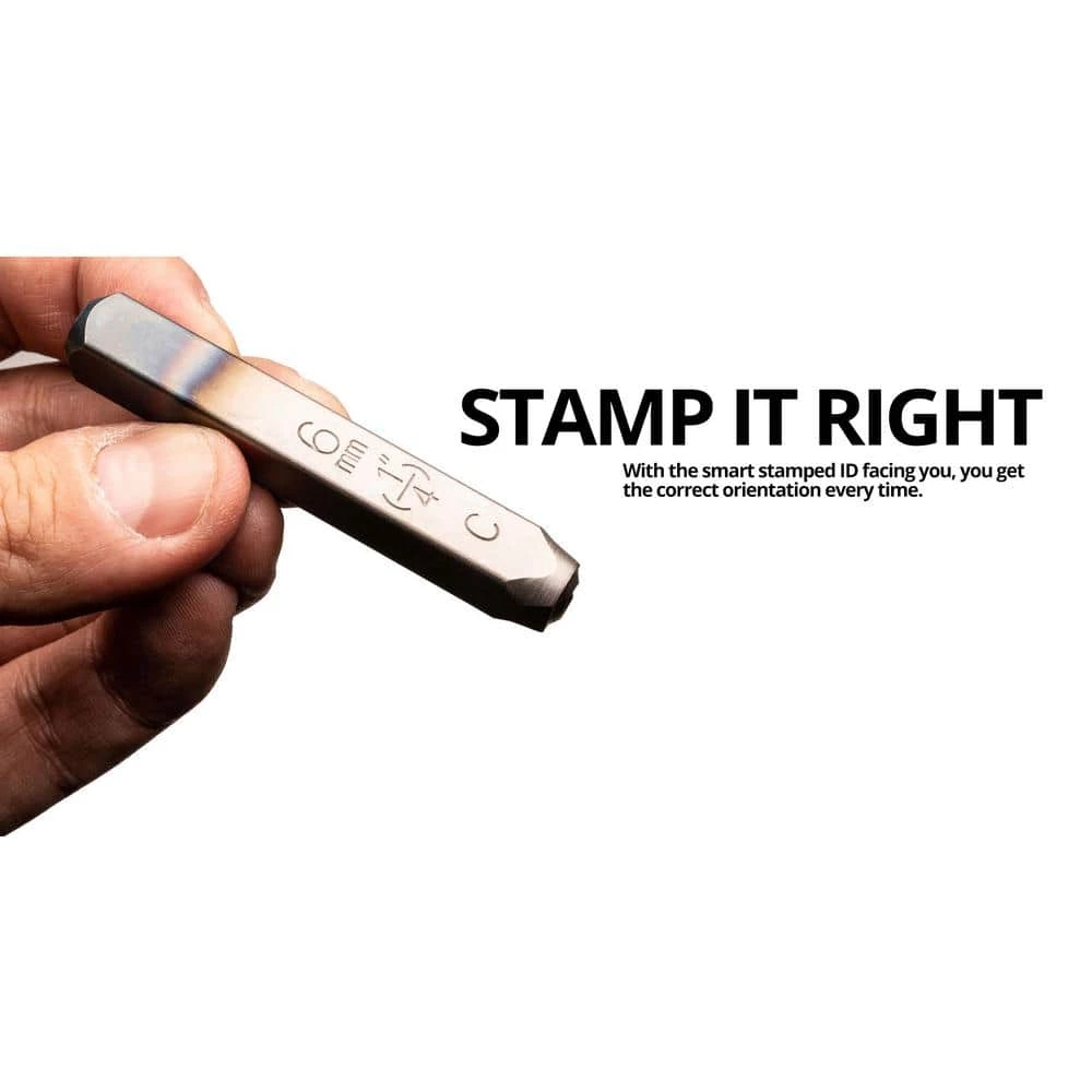 - Find the right stamp and orientation easily with engraved sizing and letter identification on the side that faces you on each stamp