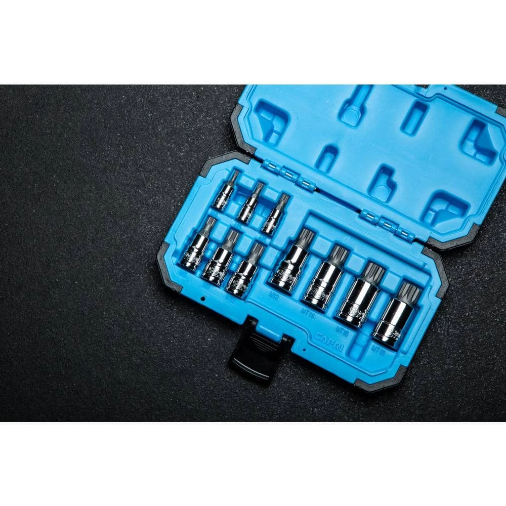 The XZN triple square bits in this set are made from heat-treated S2 steel alloy to withstand long-term use, the sockets are composed of chrome-Vanadium to provide optimal strength and durability. The pieces also have a chrome plating to prevent rusting and corrosion. This set comes with a convenient blow-molded storage box for portability and protection. These are perfect for use with breaker bars, torque wrenches and ratchets (not for use with impact tools). They are compatible with most European vehicles. This set meets and exceeds ANSI standards and comes with a lifetime replacement guarantee.